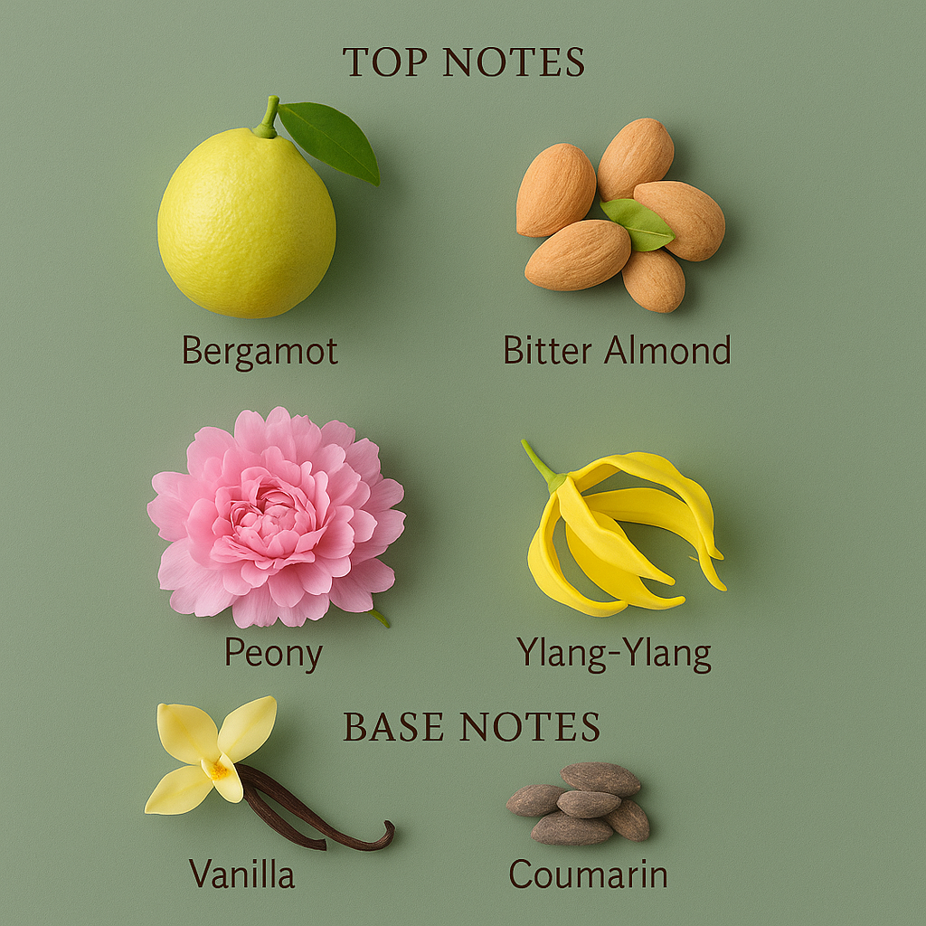 • Sugarcane-Derived Alcohol (40%) – Natural, cosmetic-grade alcohol that helps the fragrance project and develop.