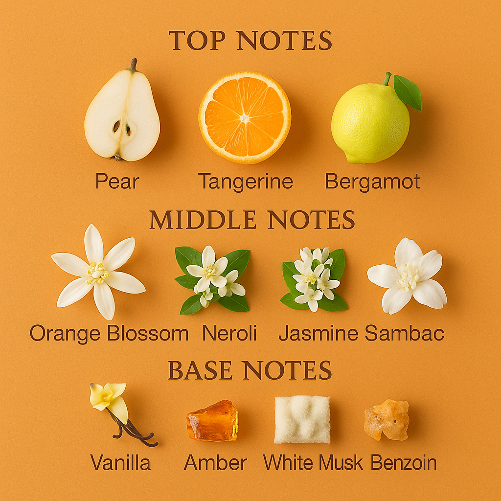 • Sugarcane-Derived Alcohol (40%) – Natural, cosmetic-grade alcohol that helps the fragrance project and develop.